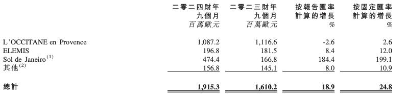 最新的數據顯示,2024財年前9個月,歐舒丹集團銷售額達19.15億歐元,同比增長18.9%,但主品牌歐舒丹的銷售額卻同比下滑了2.6%。