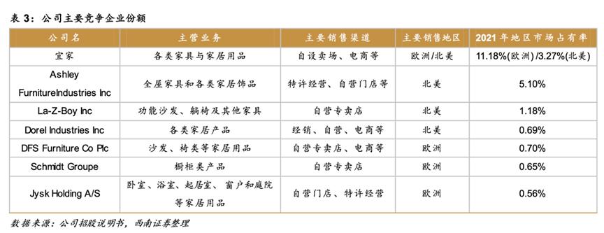 全球家俱市場龐大且相當分散,宜家在歐州市佔率僅11.8%,北美市佔率僅3.27%。歐洲和美國佔據全球家俱市場的半壁江山。