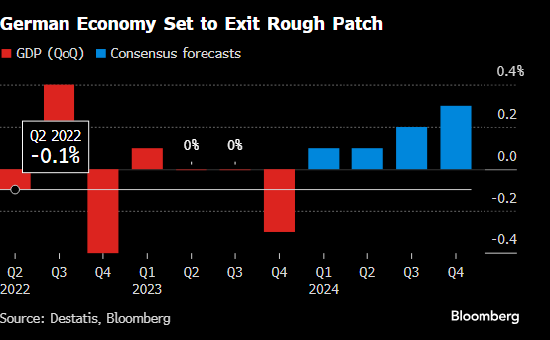 德國央行(Bundesbank)行長約阿希姆•納格爾(Joachim Nagel)表示,他聽到了」相對強勁」的工廠訂單,而德意志銀行(Deutsche Bank AG)分析師樂觀地認為,全球增長將在未來幾個月支持出口。國際貨幣基金組織(International Monetary Fund,簡稱IMF)最近將其對2024年全球產出的預測略微上調至3.2%。