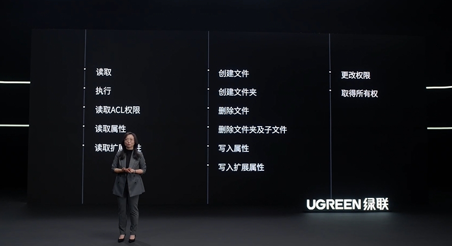其次,綠聯在文件管理功能中提供了「個人文件夾」和「共享文件夾」兩個文件類型。其中「個人文件夾」的內容,普通用户無法訪問;而「共享文件夾」中的數據,則可以通過權限設置來實現多用户或者用户組的訪問控制。在未來,包括讀取屬性、創建文件、刪除文件在內的13種權限設置將陸續上線。