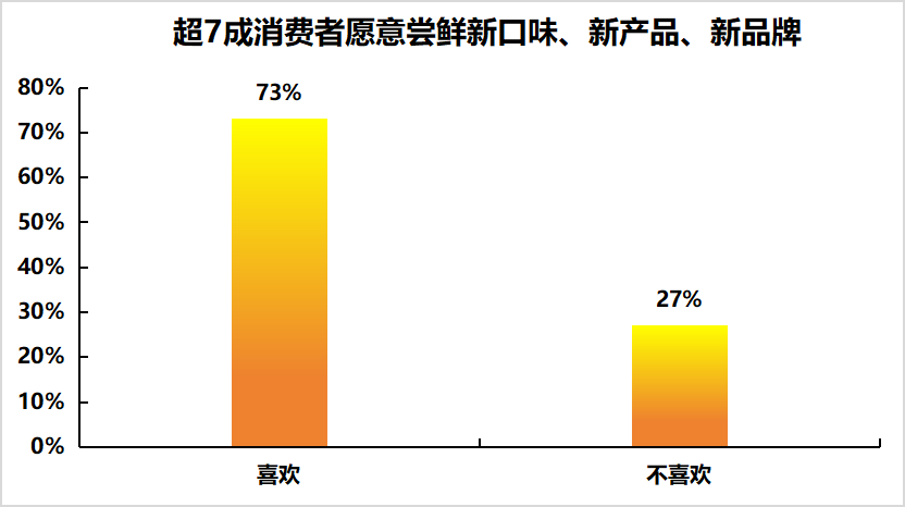 在食品飲料領域,敢於嚐鮮的消費者佔比達到了73%。
