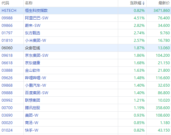 此外,澳大利亞股指、A50期指、臺灣股指都出現了明顯拉昇。香港恆指、恆生科技指數漲超1%。阿里巴巴-SW漲逾4%,東方甄選、蔚來-SW、小米集團-W漲逾2%,京東集團-SW、嗶哩嗶哩-W、小鵬汽車-W、百度集團-SW漲超1%。