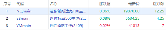 美股三大期指周二盤前幾乎平盤,截至發稿,納指期貨 $NQmain 漲0.06%,標普500指數期貨 $ESmain 漲0.08%,道指期貨 $YMmain 跌0.02%。