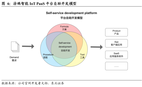 用近年來較為熱門的話題來舉例的話,塗鴉智能就好比家電家俱行業的「華為智駕」,公司本身並不生產智慧家電,但通過平臺系統,塗鴉能夠做到賦能B端用户向智能化的升級。通過完善的自主開發平臺模型,塗鴉智能擁有多種產品的開發方案、面板固件,以及在此基礎上的個性化改造,甚至可以助力用户實現「一鍵開發」。對於本身缺乏研發能力的B端用户來説,塗鴉IOT平臺是快速進入物聯時代的方便法門。