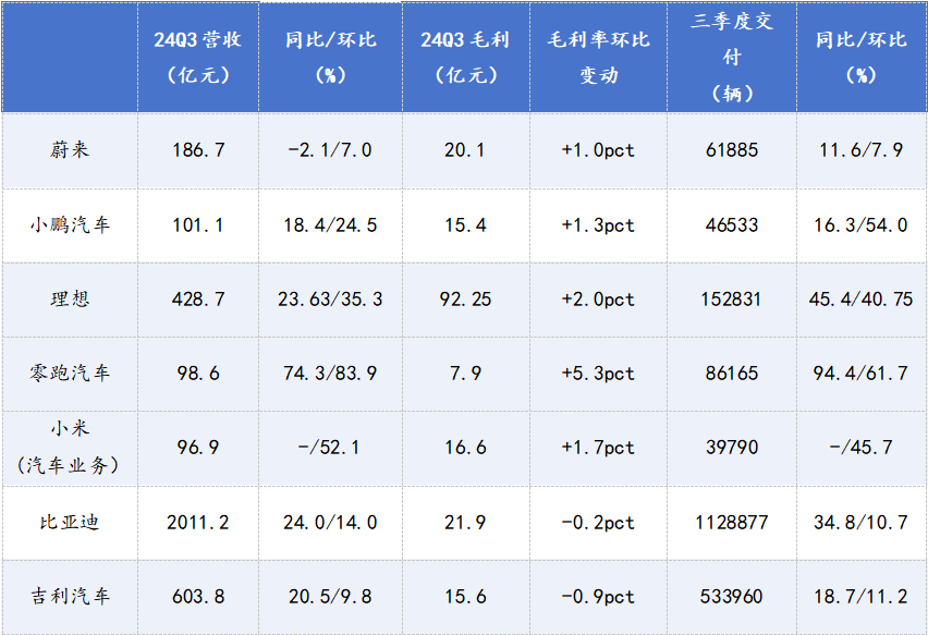 而風險因素方面,蔚來汽車便是在三季度中表現不那麼好的造車新勢力代表。從業績表現來看,其三季度營收和毛利均迎來了一定的環比改善,但對應的促銷支出和研發開支也同步加大,導致其利潤並未迎來太多改善。而公司在四季度給出的銷量指引又略低於預期。考慮到蔚來目前的戰略傾向於「押注新車型」和「降本提毛利」,公司的盈利能力或在未來面臨更多的挑戰。
