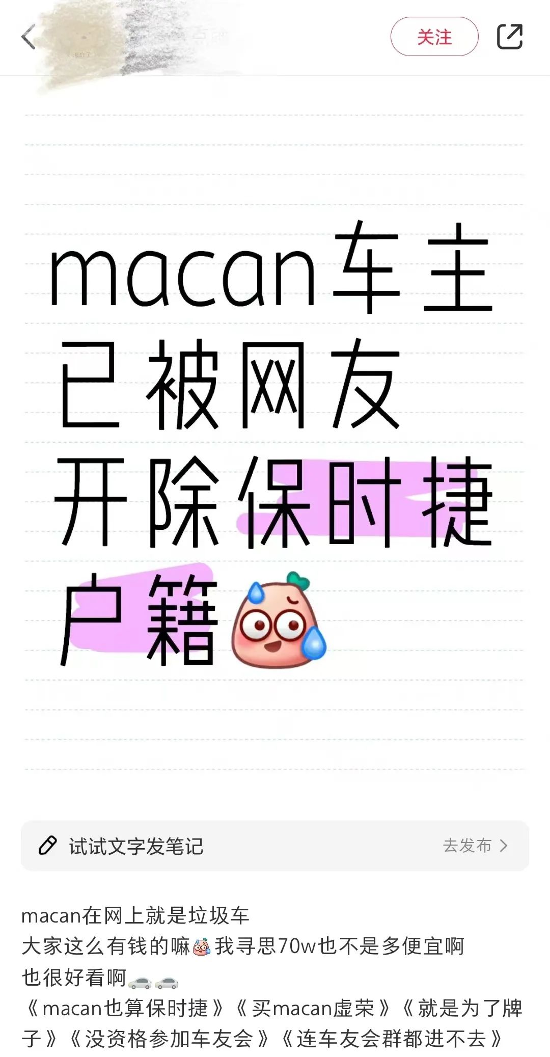 往上努努力買台Macan,有風險被嘲諷「Macan不算保時捷」「買Macan虛榮」「沒資格參加車友會」。