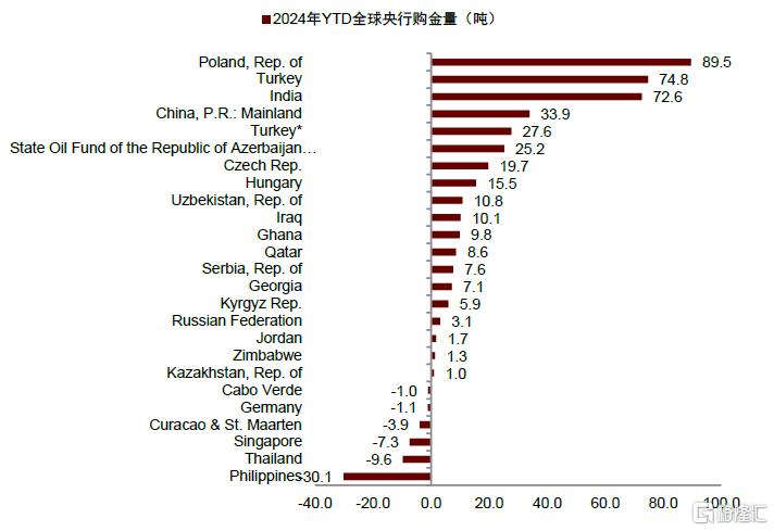 圖表6:2024年初至今全球央行購金情況一覽(截至2024年三季度)