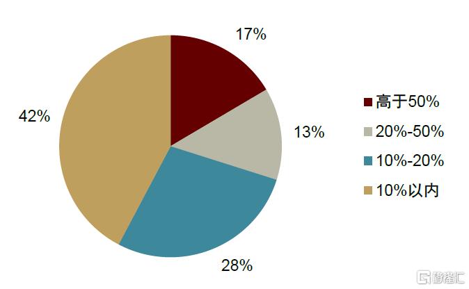 圖表10:全球97個國家或地區披露的黃金儲備佔央行儲備比例的分佈結構(截至2024年底)