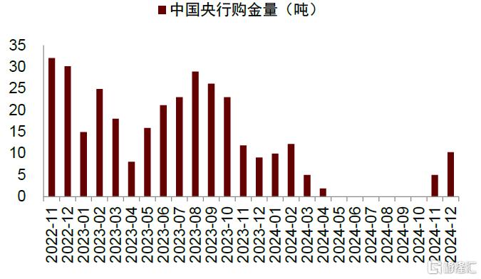 圖表8:2024年11月,中國央行重啟購金,11、12月分別購金5噸、10噸