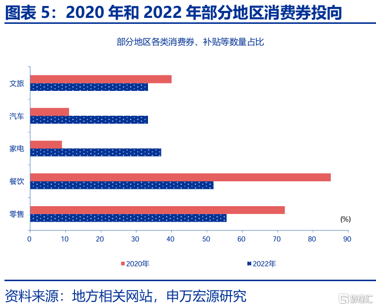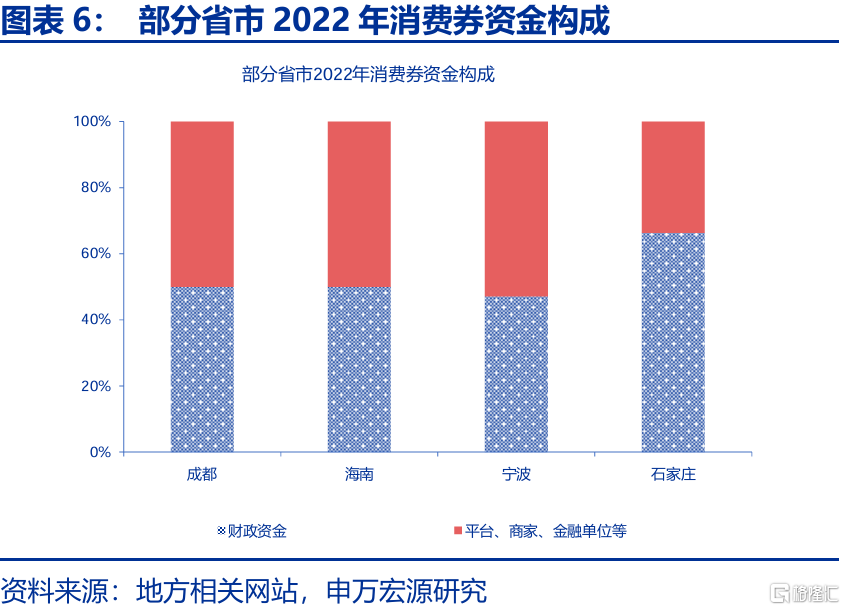 全國提振消費補貼力度更大、重點針對大宗消費,地方促消費以消費券為主、支持領域更多元。從過往下鄉和以舊換新政策來看,全國層面促消費多重點支持汽車和家電等商品消費的「大頭」,且家電、汽車摩托下鄉政策主要以農村耐用品的「普及」帶動消費增長,以舊換新政策則以促進居民家電及汽車「升級」需求來穩住商品消費基本面。相比促消費,地方促消費方式,參與主體及支持領域更為多元化,部分地區消費券資金來源不僅包含地方財政,亦有商家平臺和金融機構參與,且對家電、汽車等商品消費和食宿文旅等服務消費均有支持。