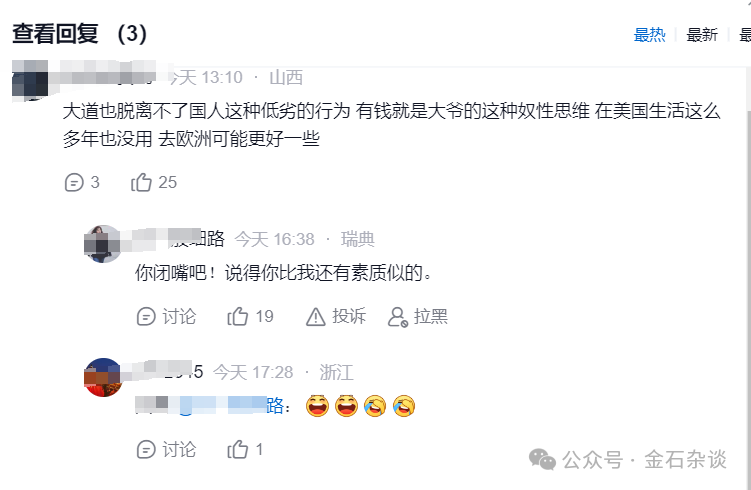 對此,有反對段永平此舉的球友表示,大道也脫離不了有錢就是大爺的這種奴性思維,在美國生活這麼多年也沒用,去歐洲可能更好一些。對此,有球友反懟:你閉嘴吧!説的你比我還有素質似的。
