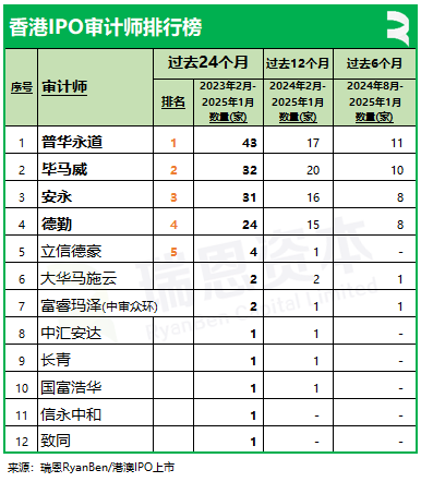 二、香港IPO審計師排行榜