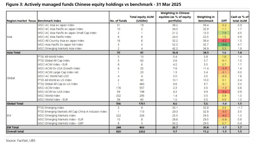 國際投資者在 2025 年第一季度將其對中國股票的低配頭寸從 - 1.9% 降至 - 1.5%,這可能是受到 DeepSeek 發佈的提振。