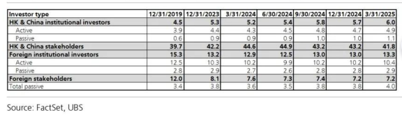 瑞銀對約 800 只活躍的外國基金進行追蹤,這些基金共持有約 2200 億美元的中國股票。