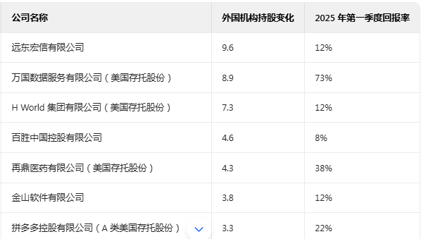 圖 7:2025 年第一季度外國活躍機構流入最多的股票