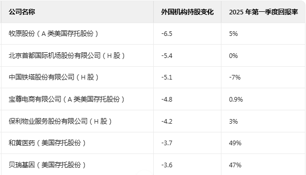 圖 8:2025 年第一季度外國活躍機構流出最多的股票
