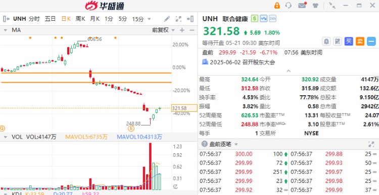 聯合健康盤前跳水7%,該股此前近三個交易日反彈逾17%,匯豐分析師表示,儘管最近進行了領導層調整,聯合健康集團的盈利增長仍面臨風險,因此下調了對這家醫療保險公司的評級。