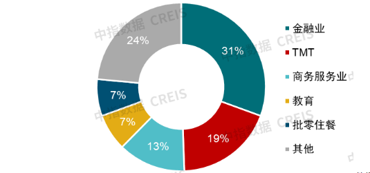圖:2025年一季度代表城市寫字樓租賃成交案例租户行業佔比