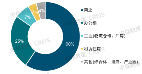 以商業地產(辦公物業、消費基礎設施、綜合體、酒店類)為底層資產的產品發行金額為264億元,佔比69%。其中以辦公物業為底層資產的產品佔比35%,較上年同期提升5個百分點;以消費基礎設施、綜合體、酒店為底層資產的產品佔比34%,較上年同期下降12%;底層資產為混合資產的產品佔比20%,較上年提升11個百分點;底層資產為產業園、租賃住房、物流倉儲及其他物業類型的產品佔比11%,較上年下降5個百分點。