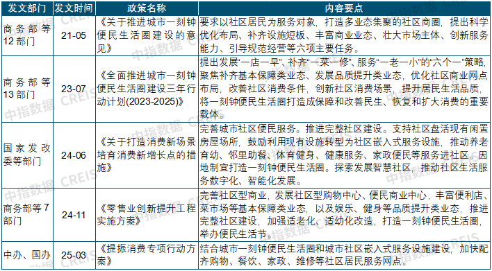 政策支持「一刻鍾便民生活圈」建設,社區商業存在發展機遇。近年來,中央多次在相關政策中提到「推進城市一刻鍾便民生活圈建設」「推動養老、育幼、家政等服務擴容提質」「培育社區消費新場景」等內容,社區商業作為「一刻鍾便民生活圈」建設的空間載體,在保障和改善民生、恢復和擴大消費等方面的作用將日益凸顯。據商務部統計數據,自2021年開展城市一刻鍾便民生活圈建設至2025年6月,我國已建成便民生活圈5510個,服務居民1.25億人,內容包含早餐鋪、便利店、小修小補、菜市場、「一老一小」服務等。