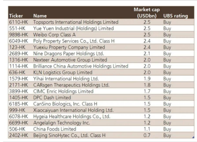 在香港市場,瑞銀還看到小盤股存在價值,因為近幾個月南向投資者對其關注度有所上升,且過去 5 年 A 股小盤股的表現顯著優於港股小盤股。瑞銀在圖 72 中提供了瑞銀覆蓋的評級為買入的中小盤股名單。