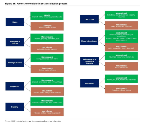瑞銀在下圖中提供了行業和股票選擇框架。