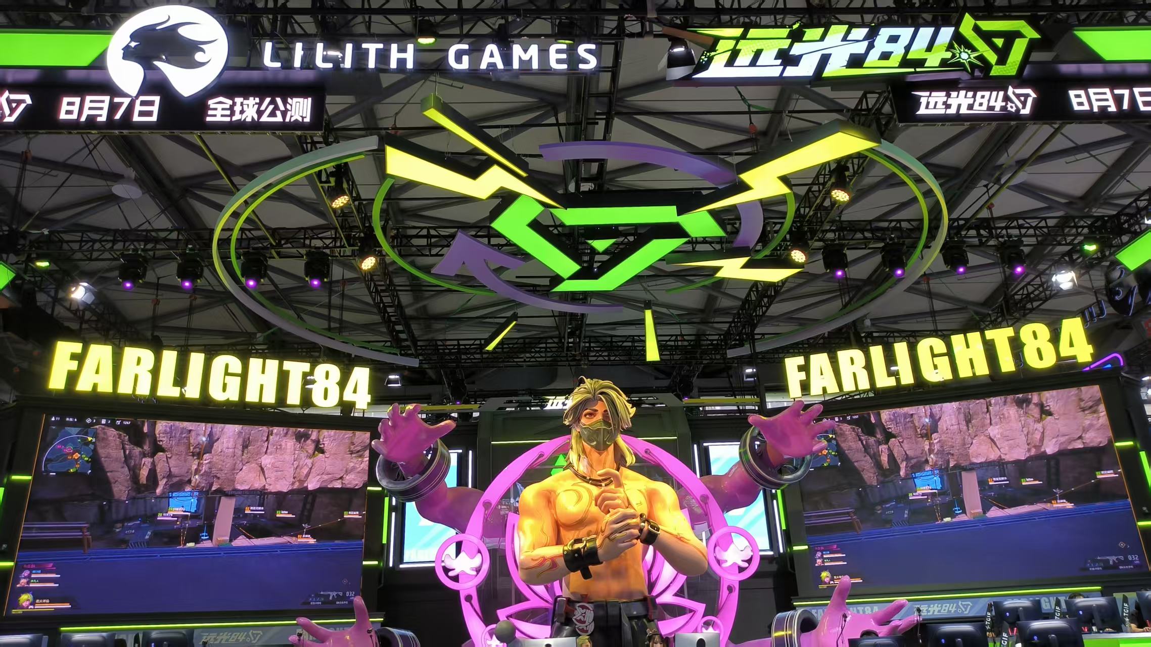 莉莉丝则带来了首款射击游戏《远光84》,这是一款融合了英雄技能、大逃杀及抓宠系统的英雄射击游戏,形成独特的“吃鸡2.0”玩法。其展台以418平方米的超大空间和巨型魁斗法天象地模型震撼登场,成为展会焦点之一。