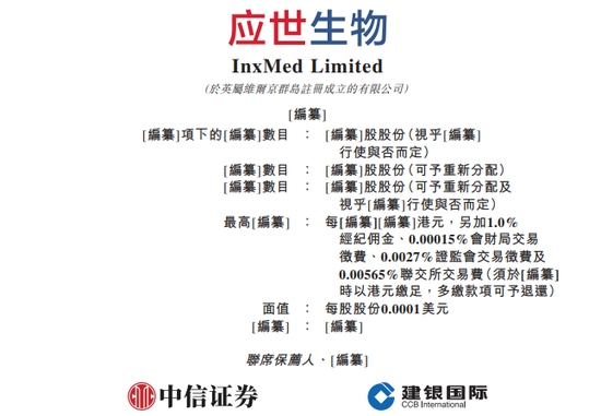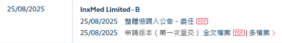 2025年8月25日,來自江蘇南京江北新區的InxMed Limited(以下簡稱「應世生物」),向港交所遞交招股書,擬香港主板上市。