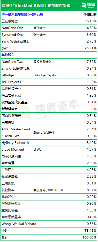 其他股東包括I-Bridge、先進製造產業投資基金、國投招商、復健資本、恩然投資、 AIHC Master Fund、Hyfinity Biohealth等。