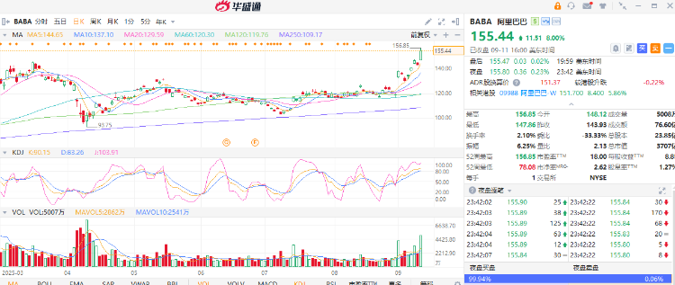 此外,據The Information報道稱,百度和阿里巴巴 正在使用自主研發的芯片來訓練人工智能模型。隔夜美股市場上, 阿里巴巴暴漲8%,不僅強勢突破3月底的前高,也刷新2021年底以來的新高。港股阿里巴巴-SW也大漲6%,股價升破150港元。