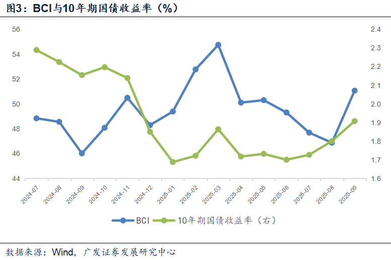 如果我們把BCI當做經濟基本面的影子指標,回溯「924」以來它與股票、利率的關係,大部分時段仍是吻合的,股票的背離主要是今年1月、6-8月;利率的背離主要是2024年11月、今年1月、7-8月。我們理解去年底和今年初主要是圍繞政策節奏的預期和兑現形成的波動;三季度前后可能和「反內卷」政策框架下的中期名義增長改善預期有關,高風險偏好驅動股票定價「高成長敍事」、債券定價賠率不足和中期通脹風險。往后看,四季度經濟數據會比較關鍵,基本面是股債的最終定價座標。