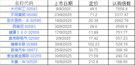從9月新上市股份來看,10只新股認購額悉數超100倍,其中大行科工更是達到7558.4倍,成為月度超購王,同時超過了毛記葵涌的6289倍,成為港股史上超購王。