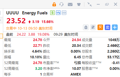 華盛資訊10月13日訊,美股核電股大漲, Energy Fuels漲超16%,年漲幅已超350%。 Centrus Energy漲超13%, Oklo漲超15%, NuScale Power漲超10%。
