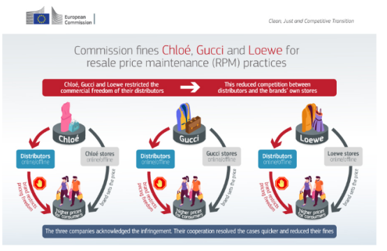 歐盟委員會調查發現,這三家時尚企業實施了「轉售價格維護(RPM)」行為。它們限制了線上和線下零售商(獨立經銷商)對旗下品牌產品(包括服裝、皮具、鞋履及配飾)的定價自主權。該壟斷行為覆蓋整個歐洲經濟區(EEA)。