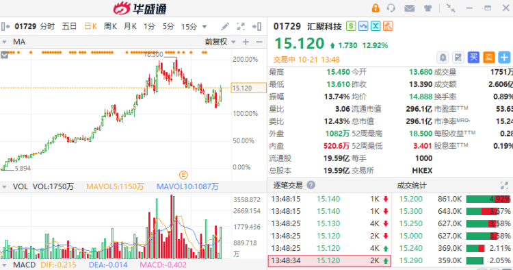 港股電訊概念股午后快速拉昇,匯聚科技漲超13%,長飛光纖光纜漲超8%,中興通訊漲超6%。