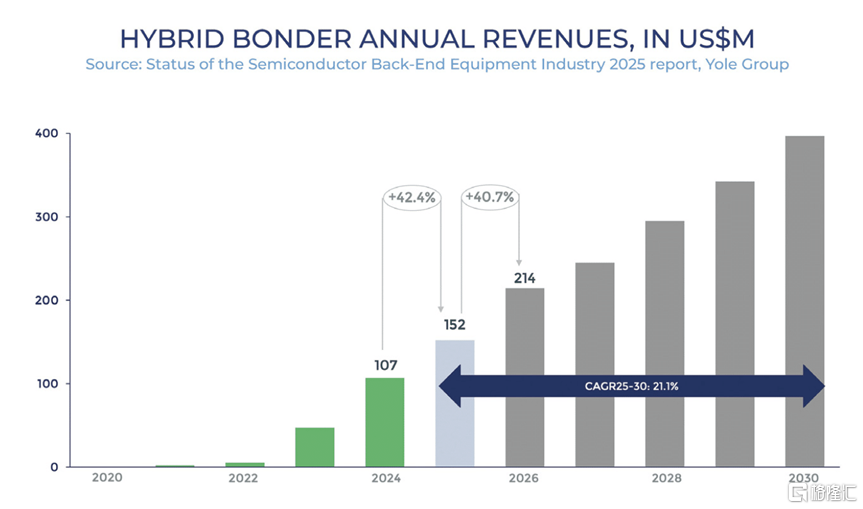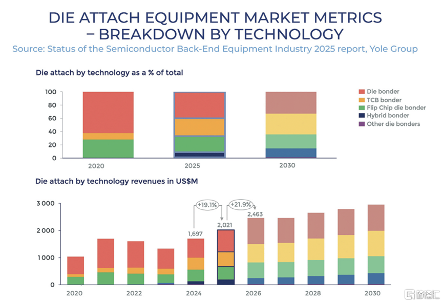 鍵合設備: 隨着先進封裝的快速發展,熱壓鍵合與混合鍵合成為增長最快的設備領域,反映封裝正向芯粒(Chiplet)與HBM架構轉型。