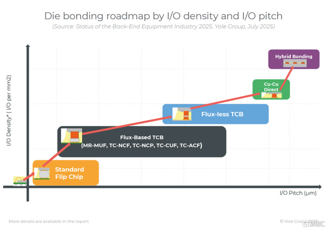 能看到,雖然引線鍵合等傳統解決方案仍然具有市場潛力,但TCB、混合鍵合等先進技術纔是推動最重大變革的關鍵。這一演變反映了行業正向高性能計算 (HPC)、人工智能 (AI)、汽車和5G應用的廣泛轉型,這些應用對性能、密度和可靠性至關重要。