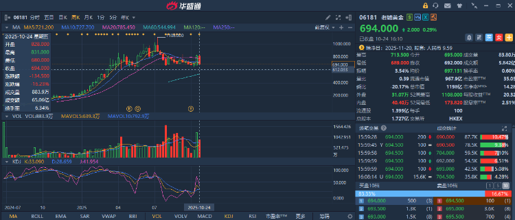 10月22日,老鋪黃金發布公告稱,於2025年10月21日(聯交所交易時段后),本公司與配售代理訂立配售協議,配售代理盡力促使不少於六名承配人購買371萬股新H股,配售價爲每股732.49港元。
