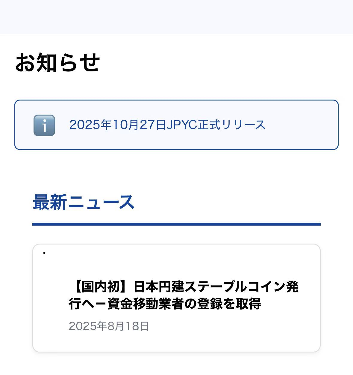 據日本金融科技初創公司 JPYC 官網信息,「JPYC」於10月27日正式發佈,成為全球首個日元穩定幣。