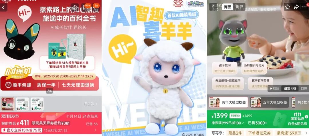 此外,湯姆貓公司於去年12月推出的「湯姆貓AI童伴機器人以及奧飛推出的AI智趣喜羊羊也有相對不錯的銷售表現,其中前者在三大平臺總銷量約6000台,由於單價高達1387-1989元,總銷售額約有1000萬元;后者則在上市首月售出1.2萬台,總銷售額超400萬元。
