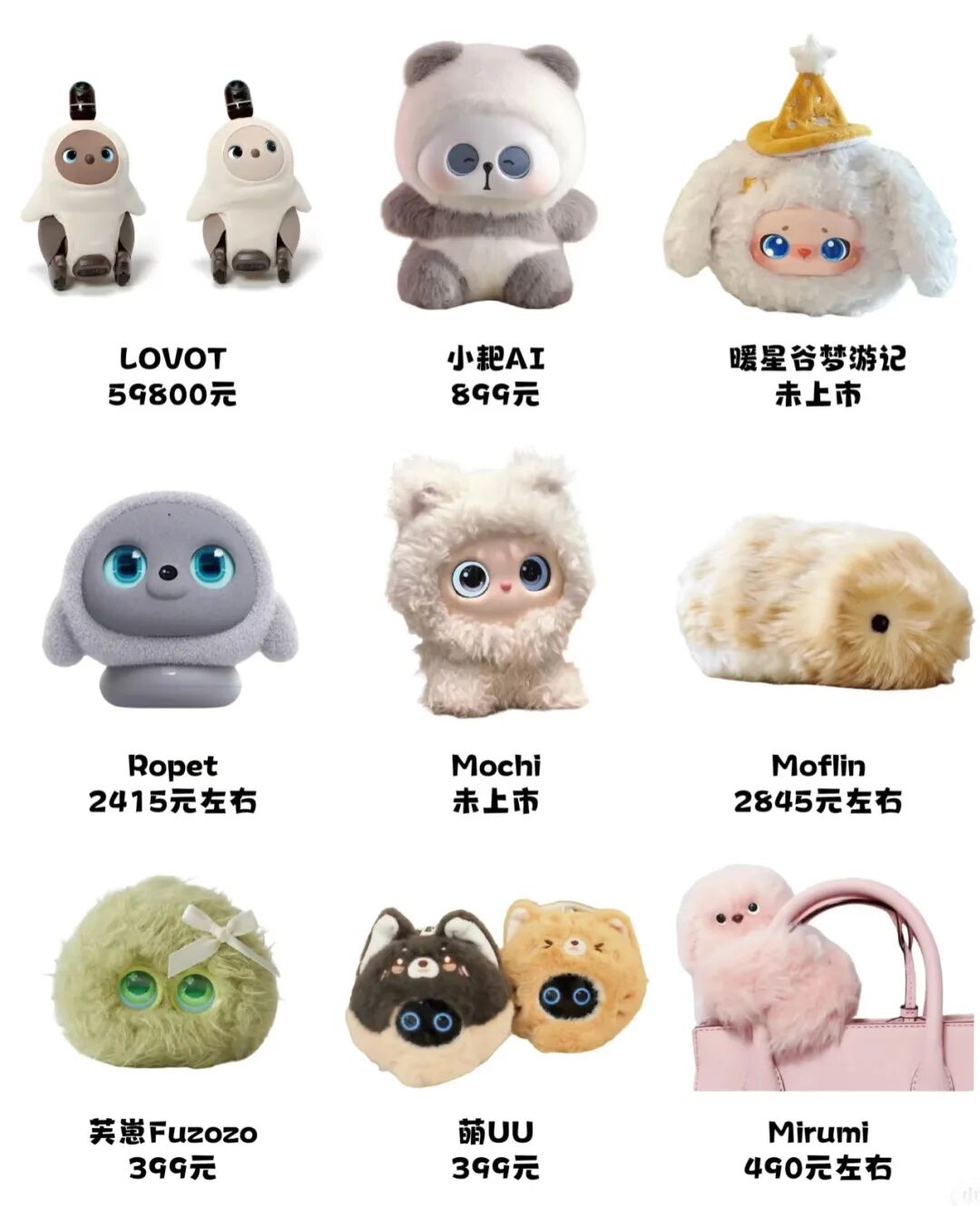 2025 年下半年以來,芙崽Fuzozo、萌UU、小耙AI 、Mochi、暖星谷等多款產品相繼發售或官宣,這類產品普遍突出「高顏值+強陪伴感+養成屬性」三大特徵,外觀上多采用親膚柔軟的毛絨或搪膠毛絨材質,並通過擬人化的交互設計營造出類似「陪伴寵物」的情感聯結,因此常被稱為「AI毛絨」或「AI寵物」。其中,定價 399-499 元的中檔產品芙崽 Fuzozo與萌UU率先打開市場,成為該品類今年表現相對亮眼的代表。