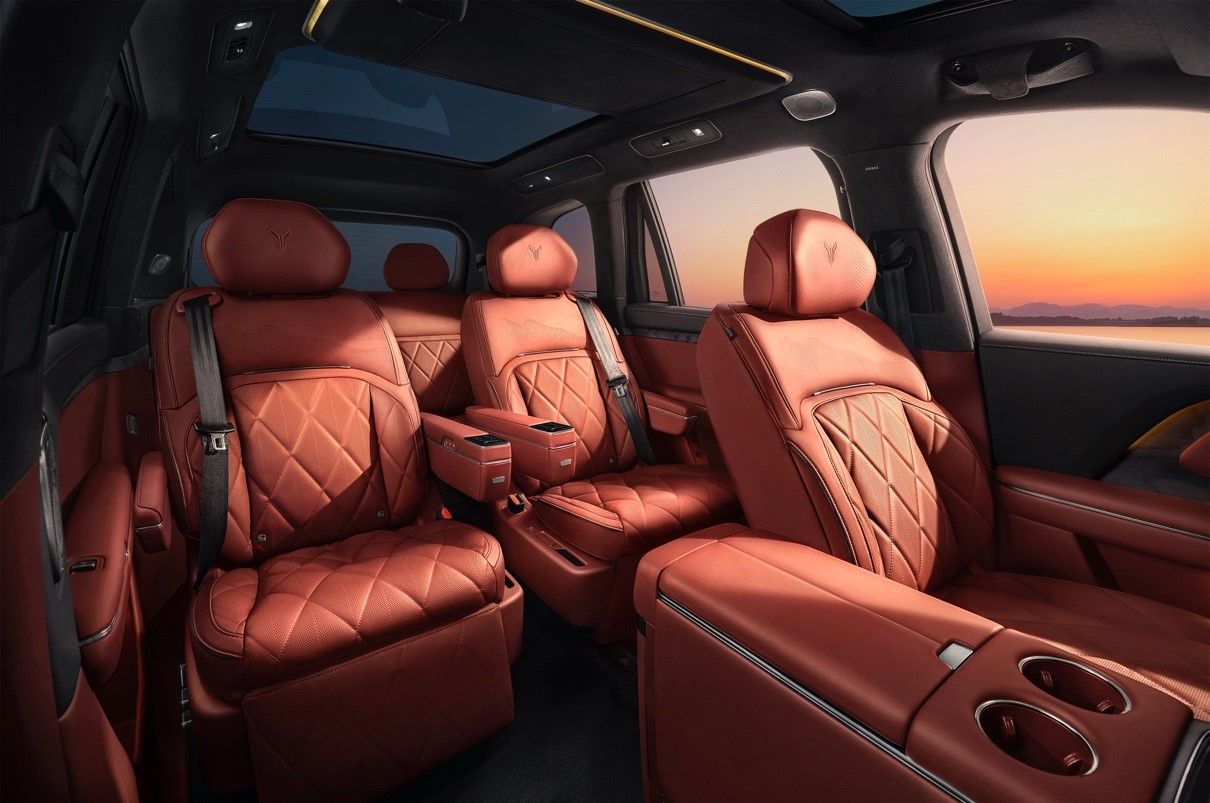 車內大量運用山水意境孔紋,以5種不同規格的打孔皮革交疊呈現,最小孔徑僅0.9mm,通過光影交錯勾勒出遠山近水的層次意境。與之呼應的是總面積達1.228㎡的山水流韻木飾,全車共11處精嵌,流動木紋裝飾充滿山形水意。座椅設計同樣延續東方美學基因。頭枕處首次應用刺繡版嵐圖LOGO,與山水意境孔紋形成呼應,於細節處彰顯豪華質感。嵐圖汽車盧放表示:「嵐圖不僅造好車,更堅持原創,將中式美學智慧融入產品,讓世界看見中國品牌的浪漫與自信。」