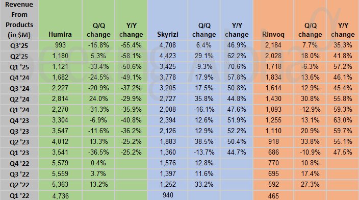 AbbVie in charts: Revenues from Humira -55%, Skyrizi +47%, Rinvoq +35% Y/Y