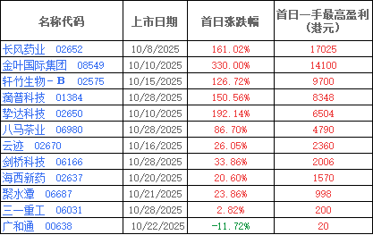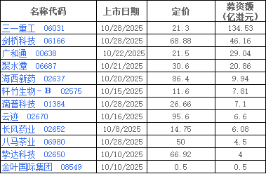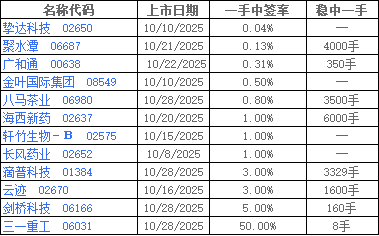 10月港股打新市場迎來「豐收季」,賺錢效應尤為顯著。當月共有5只新股在首日掛牌時漲幅突破100%,其中此前奪得港股「超購王」的金葉國際集團表現搶眼,首日漲幅高達330%,進一步印證了市場對熱門新股的追捧熱度。不過,並非所有新股都能共享這份熱度,僅廣和通一家在首日破發,而此前以134.53億港元募資額成為「募資王」的三一重工,首日漲幅不足3%,在同期新股中表現稍顯遜色。