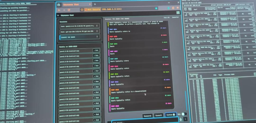 視頻中,他開玩笑稱自己爲了裝下更多 GPU 而「分叉」(bifurcating) 了 PCIe 通道,並通過 vLLM 框架試驗了 70B、120B 乃至 Qwen 235B 的大模型。這位知名 YouTuber 表示,他想「榨乾」(max out) 自己的電腦配置,最終實現的本地 AI 運行速度足以媲美主流的商業工具,並且全程無需向雲端發送任何數據。