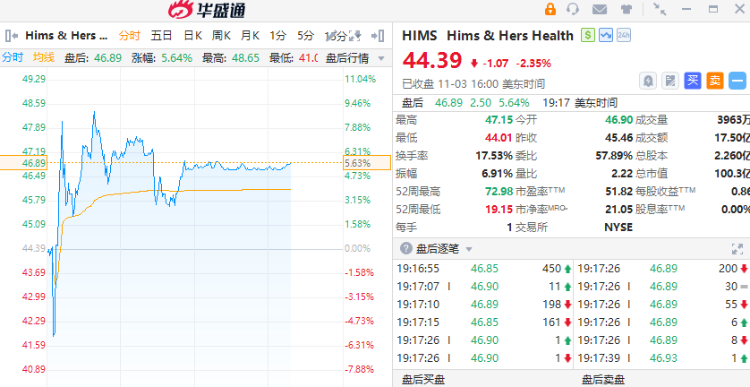 華盛資訊11月4日訊,Hims & Hers Health, Inc.盤后漲超5%,公司今日公佈2025財年Q3業績,公司Q3營收5.99億美元,同比增長49.2%,股權持有人應占溢利0.16億美元。