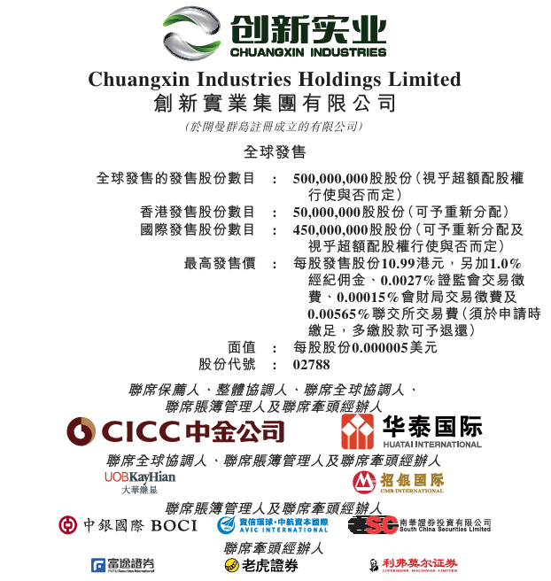 華盛資訊11月14日訊,創新實業(02788.HK)今起招股,發售價區間為10.18-10.99港元,每手500股,一手入場費5550.42港元,預期H股將於2025年11月24日(星期一)上午九時正在聯交所開始買賣。