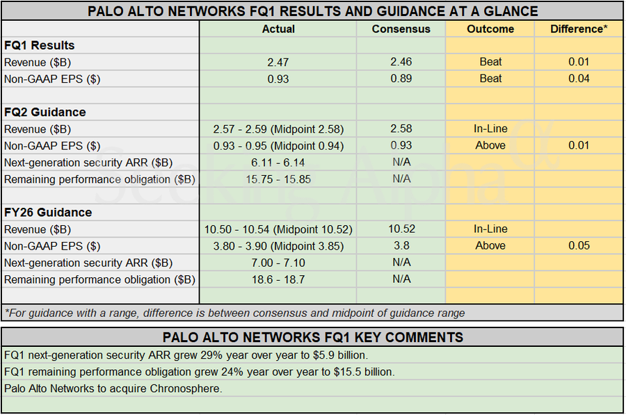 - Palo Alto Networks Non-GAAP EPS of $0.93 beats by $0.04, revenue of $2.47B beats by $10M