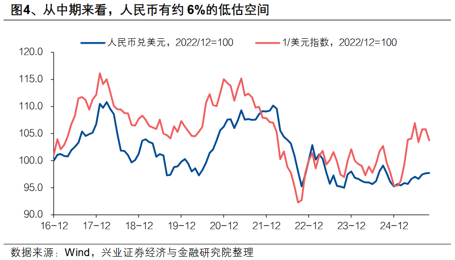 中長期:人民幣匯率系統性低估將逐步修正。自2023年以來,人民幣存在約6%的系統性低估。但此前擔憂的現實基礎正在逐步瓦解: