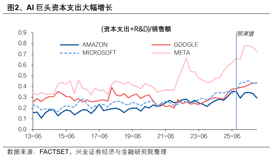 《美國AI神話褪色,市場」三殺「風險上升》),流動性對於AI敍事維繫的重要性明顯上升:一是近期聯儲官員的鷹派發言已引發美股大波動,指向當前美股的高估值水平已開始對流動性環境高度敏感。二是AI巨頭們已進入基礎設施建設(如算力中心、能源配套)等重度資本投入階段,資本開支佔營收比重持續攀升,AI巨頭們已開始轉向債務融資。若貨幣環境收緊導致融資成本上升,可能引發AI板塊估值大幅調整,這一風險在2026年中期選舉臨近的背景下是特朗普政府難以承受的。